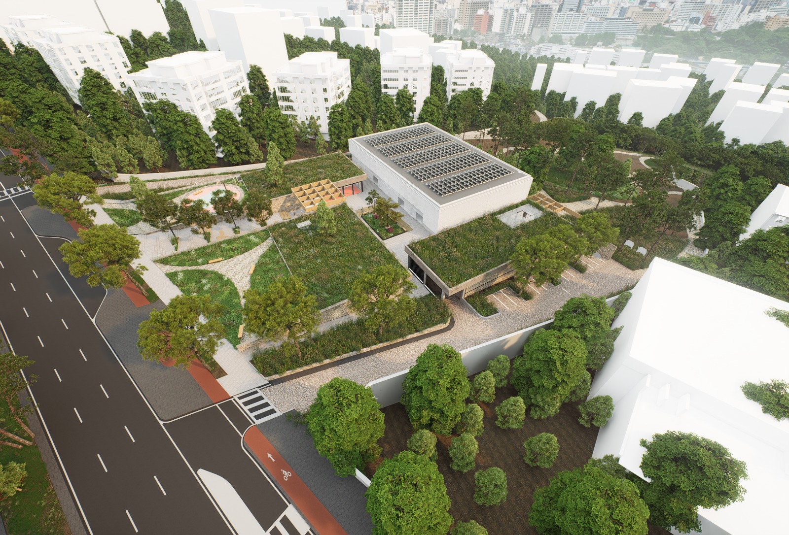 Projede öne çıkan yenilikçi unsurlardan biri de çim çatı uygulaması. Doğayla uyumlu mimari anlayışın bir yansıması olan bu sistem hem enerji verimliliği hem de estetik açıdan önemli avantajlar sunuyor. Çim çatı sayesinde yapı yazın daha serin, kışın ise daha sıcak kalırken, ısı ve ses yalıtımı da doğal yollarla sağlanmış olacak. Aynı zamanda çatıda oluşturulacak yürüyüş alanları, bitkilendirme ve ahşap yüzeylerle kullanıcılar için farklı bir deneyim sunulacak. Bu uygulama, şehirde sürdürülebilir mimari örneklerinden biri olarak öne çıkacak.