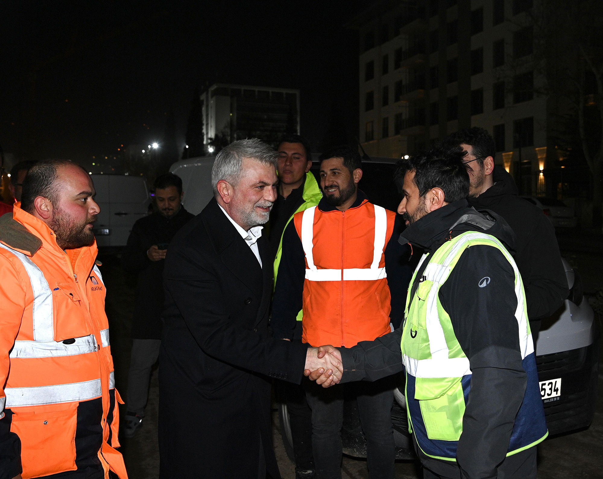 Büyükşehir Belediye Başkanı Fırat Görgel, gece boyunca sahada hummalı bir çalışma yürüten ekipleri ziyaret ederek çalışmaları yerinde inceledi. Ekiplerle bir araya gelen Başkan Görgel, özverili çalışmalarından dolayı personele teşekkür etti. Yol Yapım, Bakım ve Onarım Dairesi Başkanı Mehmet Emin İnceer ile Ulaşım Dairesi Başkanı Gökhan Başpınar’dan yürütülen faaliyetlere ilişkin detaylı bilgiler alan Başkan Görgel, çalışmaların planlanan takvim doğrultusunda aralıksız sürdüğünü ifade etti.