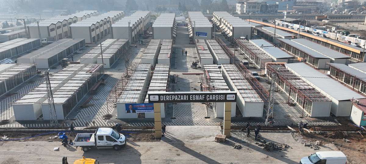 Kahramanmaraş Büyükşehir Belediyesi öncülüğünde Piazza AVM yanında inşa edilen Derepazarı Esnaf Çarşısı’nda çalışmalar hız kesmeden devam ediyor. Şehir merkezindeki rezerv alanda iş yeri bulunan esnaflar için geçici bir çözüm olarak tasarlanan çarşıda, iş yerlerinin kurulumunda sona yaklaşılırken üstyapı çalışmaları da büyük bir hızla ilerliyor.