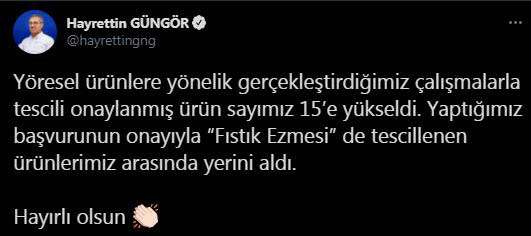 Kahramanmaraş Büyükşehir Belediyesi tarafından başvurusu yapılan ve Türk Patent ve Marka Kurumu tarafından tescillenen Kahramanmaraş Fıstık Ezmesi Twitter’da “Trend Topic” oldu.