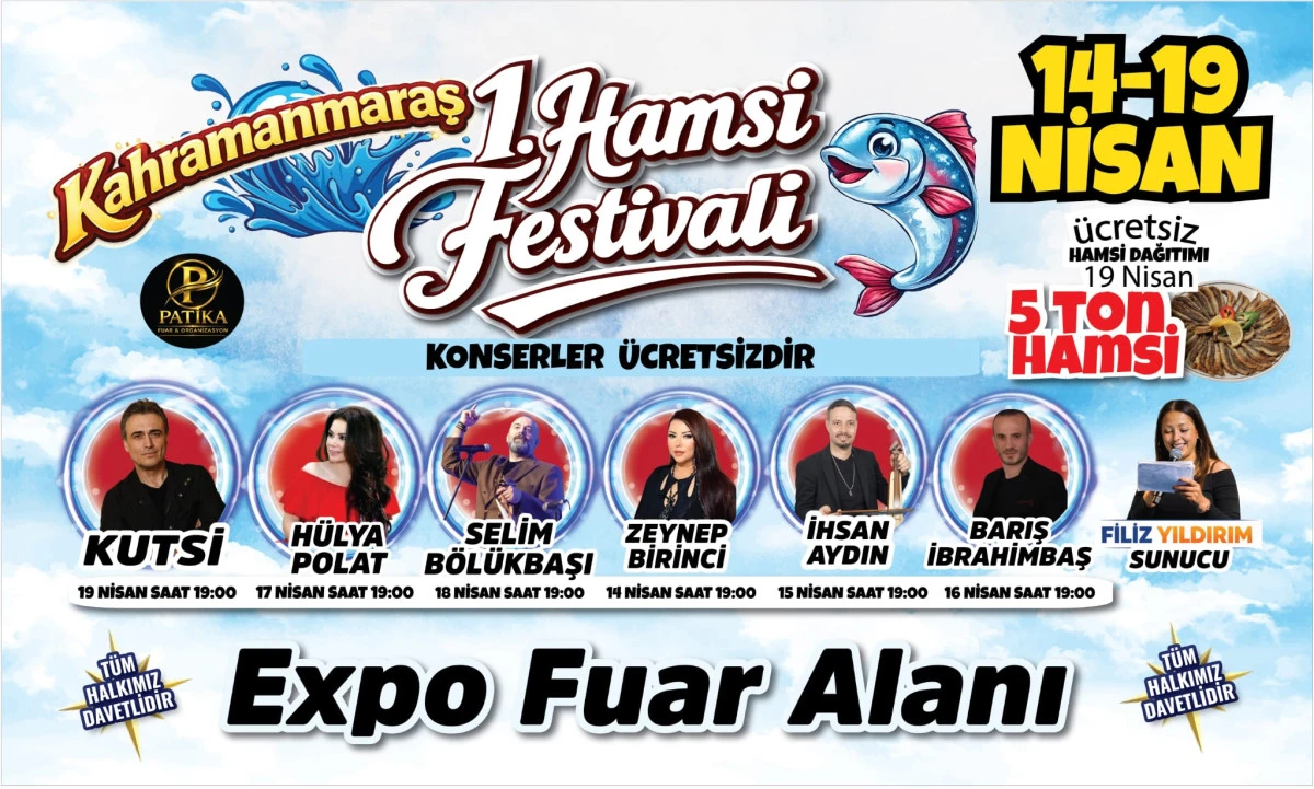 Patika Fuar ve Organizasyon tarafından 14- 19 Nisan tarihleri arasında expo fuar alanında Kahramanmaraş 1. Hamsi festivali düzenlenecek.