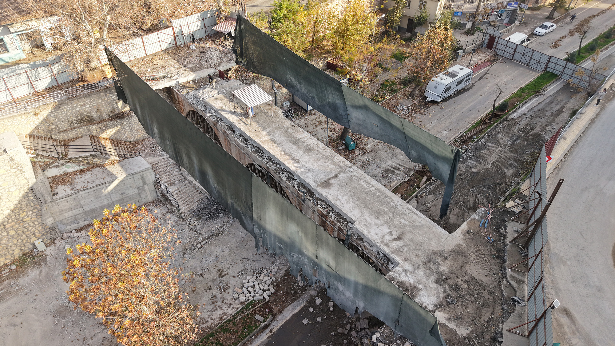 Şehrin tarihine tanıklık eden ve 6 Şubat depremlerinde hasar gören Kanlıdere Köprüsü’nde restorasyon çalışmaları sürüyor.