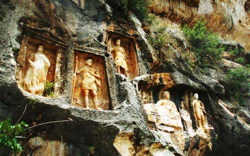 Dünyanın en ilginç yapıları arasında bulunan ve sırrı hala çözülemeyen Adamkayalar, gören herkesi kendine hayran bırakıyor. Kabartmaların çevresindeki yerleşim yerinin ve surların ise sahilden iç kısımlara giden yolları kontrol etmek için yapıldığı tahmin ediliyor. Helenistik Dönem'de de bu çevrede pek çok kalenin var olduğu ve bu sebeple bu bölgenin askeri bölge olduğu düşünülüyor.